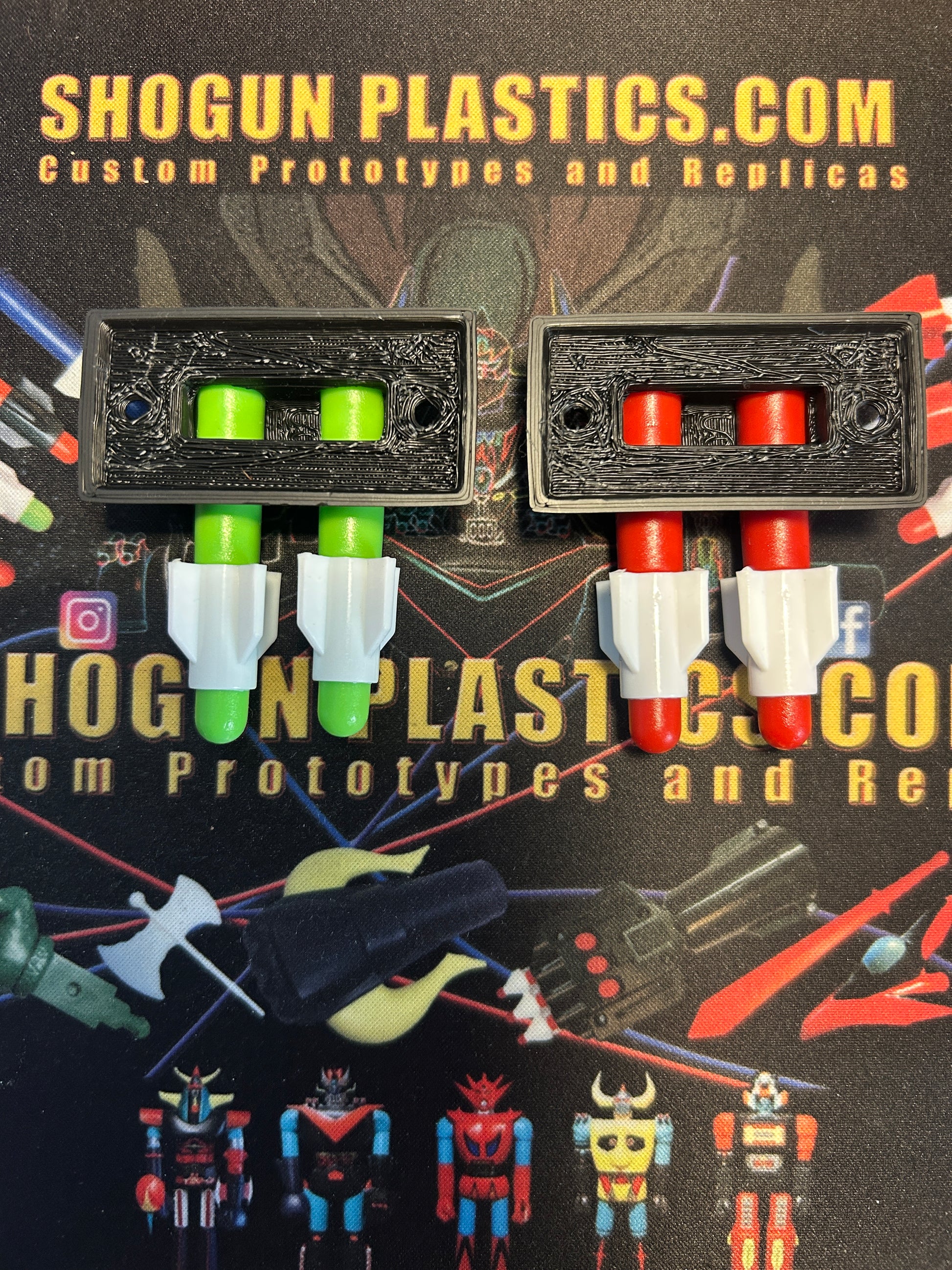 Red Missiles and Green missiles with the clipped vane white fins
