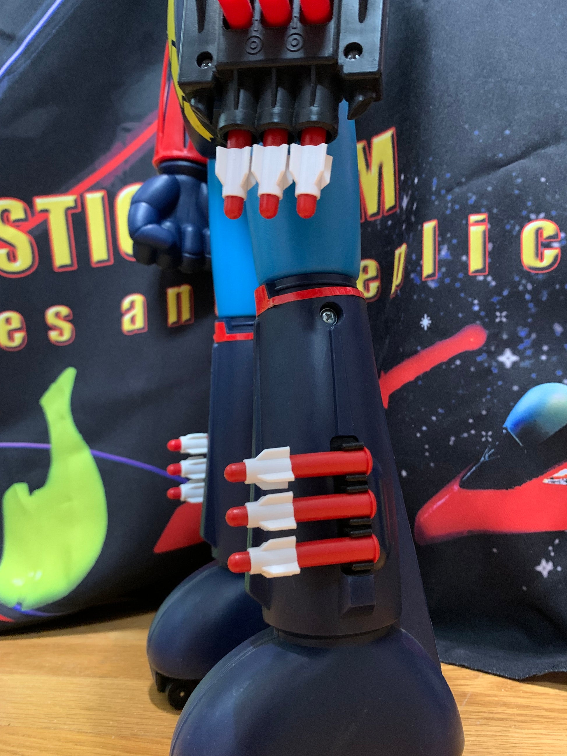 The red missile with the clipped vane white fins were the later missiles to be released. They are most common on the later releases of the Mattel Shogun Warriors and some of the later Popy Jumbo Machinders.