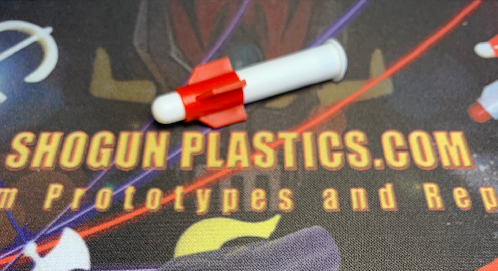 The White missile with the clipped vane red fins were the later missiles to be released. They are most common on the later releases of the Mattel Shogun Warriors and some of the later popy Jumbo Machinders. These were the rarer variant release.